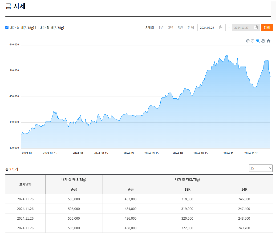 최근 금 시세는 국내외 경제 상황에 따라 변동성이 있지만, 금은 여전히 많은 사람들에게 안정적인 자산으로 인식되고 있습니다. 금값은 보통 온스당 가격으로 나타내지만, 대한민국에서는 1돈 단위로 가격을 계산하는 경우가 많습니다.