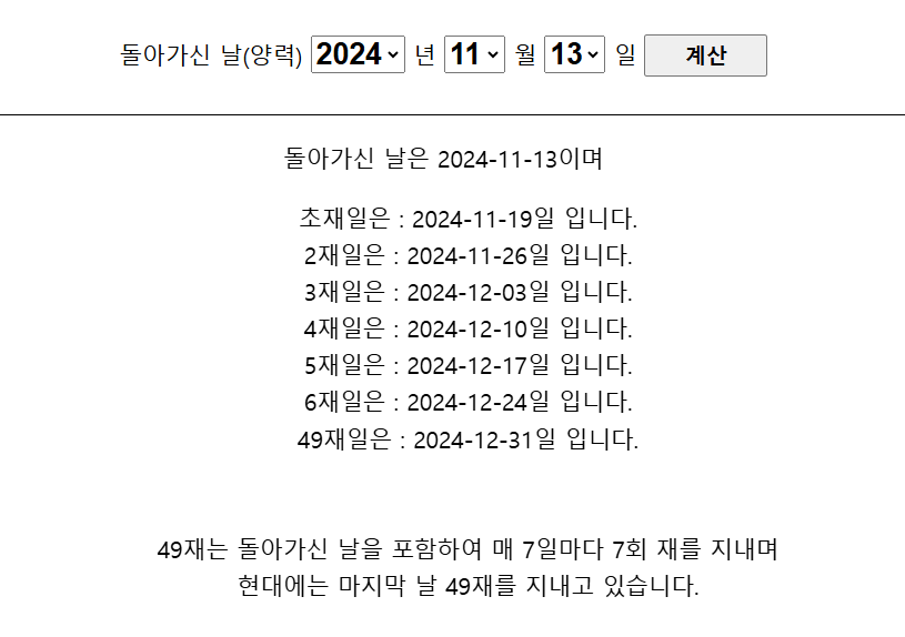 아래 49재 계산기를 클릭 해 직접 계산해보시기 바랍니다.
